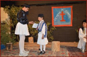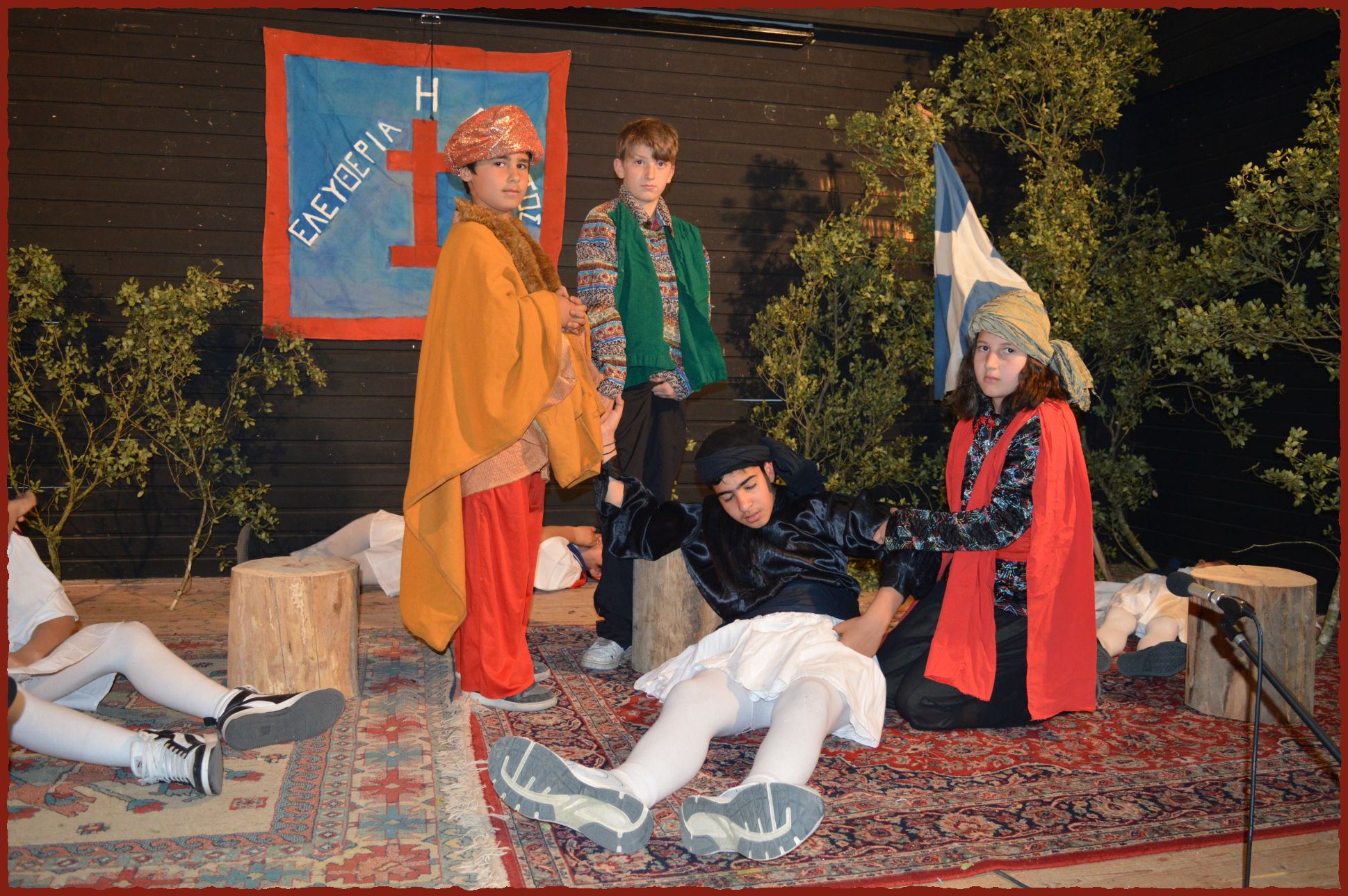 Έτσι αφού διαβάσαμε, γράψαμε, ζωγραφίσαμε, είδαμε ταινίες και βίντεο για τη ζωή του ήρθε η ώρα να ανέβουμε στο θεατρικό σανίδι. Εκεί καταθέσαμε μαζί με την ψυχή μας κάποιες ψηφίδες από την πολυτάραχη ζωή του, με την υπόσχεση να μην ξεχάσουμε πως θέλει αρετή και τόλμη η ελευθερία.