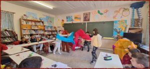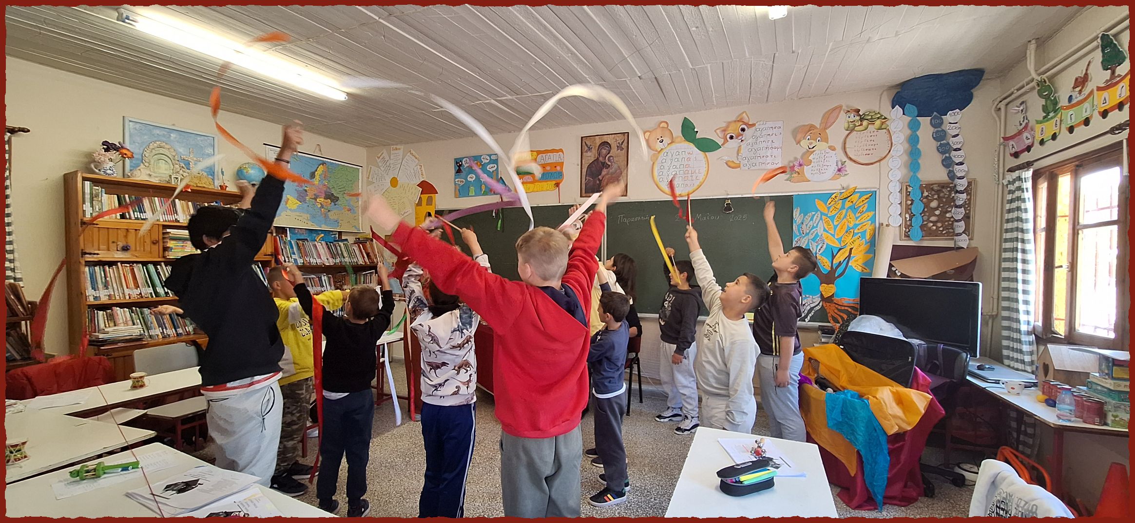 Άρχισαν να μας λένε παραμύθια. Τα παραμύθια ζωντάνεψαν και οι ήρωες άρχισαν να μιλούν μαζί μας. Τους μιλούσαμε κι εμείς. Τραγουδήσαμε και παίξαμε θέατρο τις περιπέτειες των ηρώων. Δώσαμε διαφορετική διάσταση στις ιστορίες τους και φτιάξαμε τις δικές μας. Περάσαμε πάρα πολύ ωραία. Μεταμορφωθήκαμε σε νεράιδες, κολυμπήσαμε σε θάλασσες, βραχήκαμε από τη βροχή, δώσαμε λύση στον παππού πως να τα βρει με τη γιαγιά και πως να τη συγχωρέσει…Γίναμε φίλοι με κουκουβάγιες και δελφίνια…κι όλα αυτά χωρίς να βγούμε καν από την τάξη… Ανακαλύψαμε πως είμασταν γεννημένοι παραμυθάδες και ηθοποιοί…